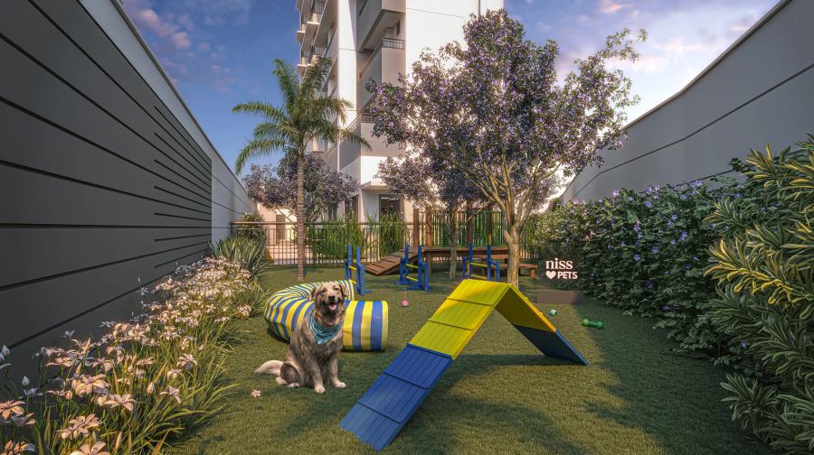 * Jardim, playground e área de convivência;