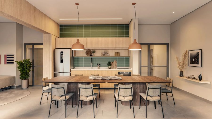 * Espaço gourmet, churrasqueira e salão de festas;