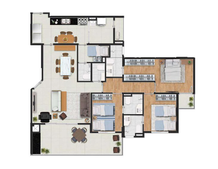Três torres de alto padrão são distribuídas em 4.643m² de terreno, com paisagismo exuberante e um bosque privativo de mais de 550 m². Os apartamentos são amplos, nas metragens 95m², 128m² e 153m² com 3 a 4 dormitórios e acabamentos nobres.